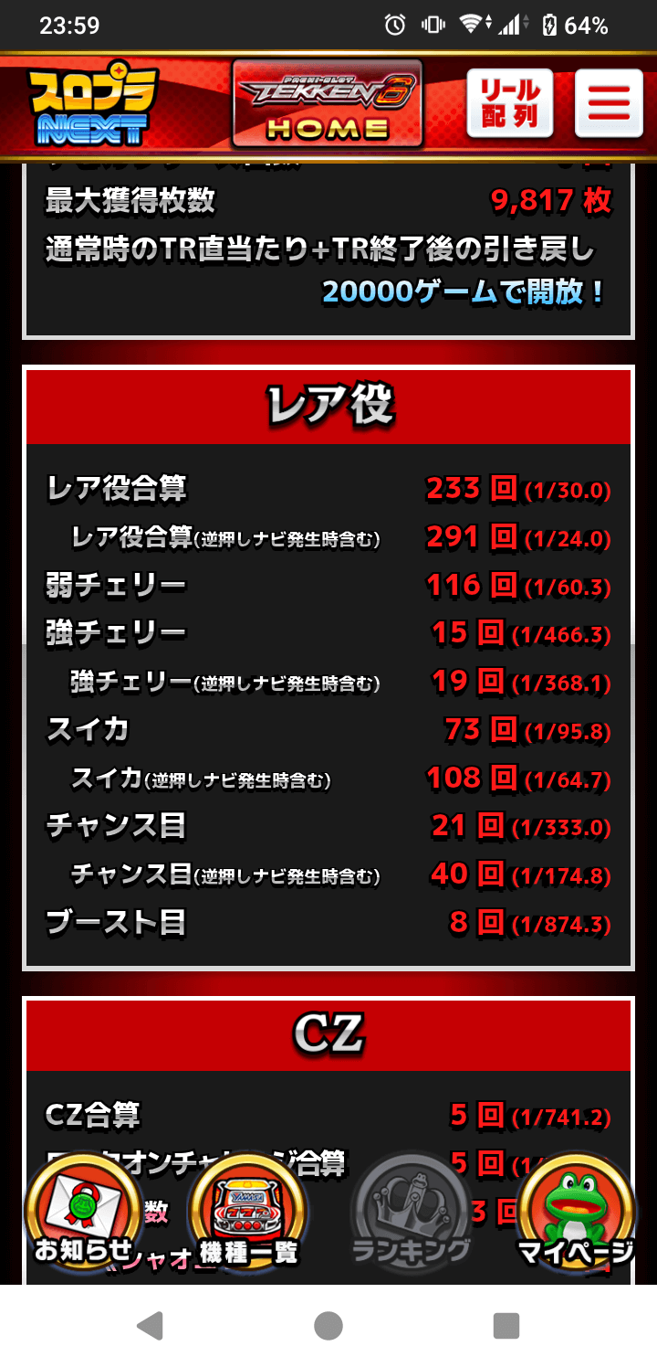 レア役確率 1/6.8