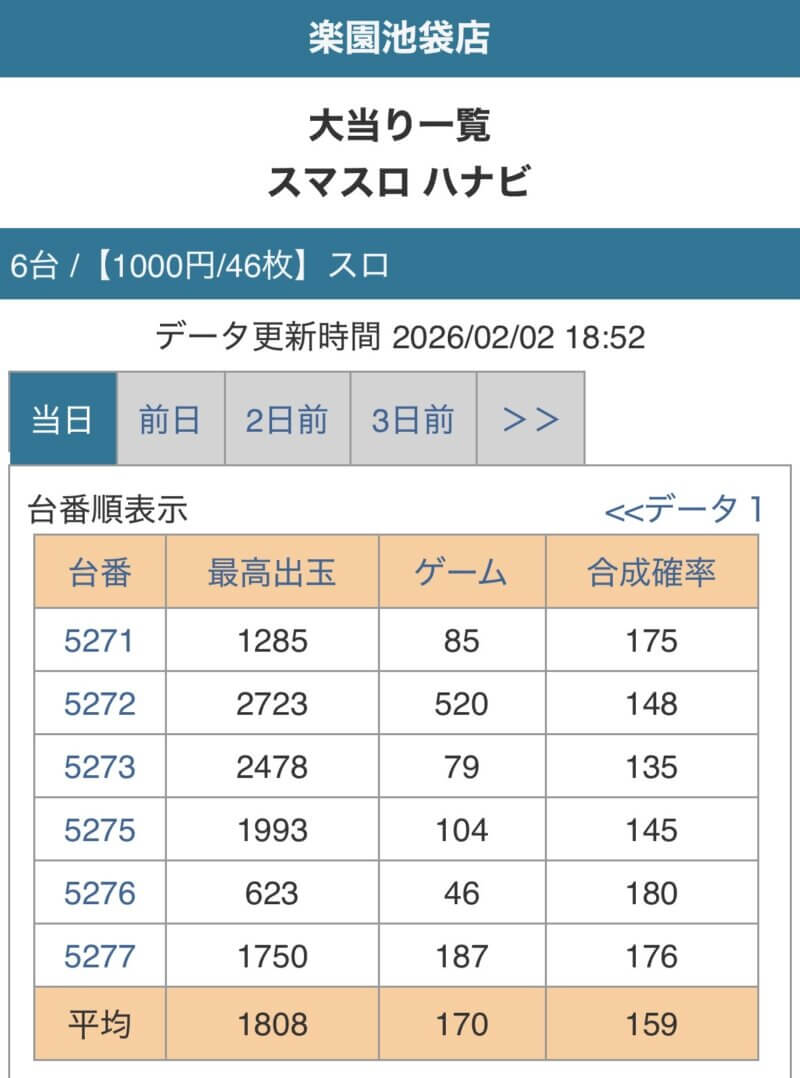 新ハナビは2台残ってて差枚400と1400になってるぞww