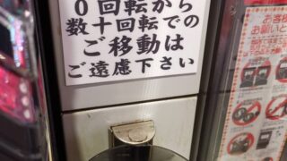 スロット台横の張り紙「0回転から数十回転でのご移動はご遠慮下さい」